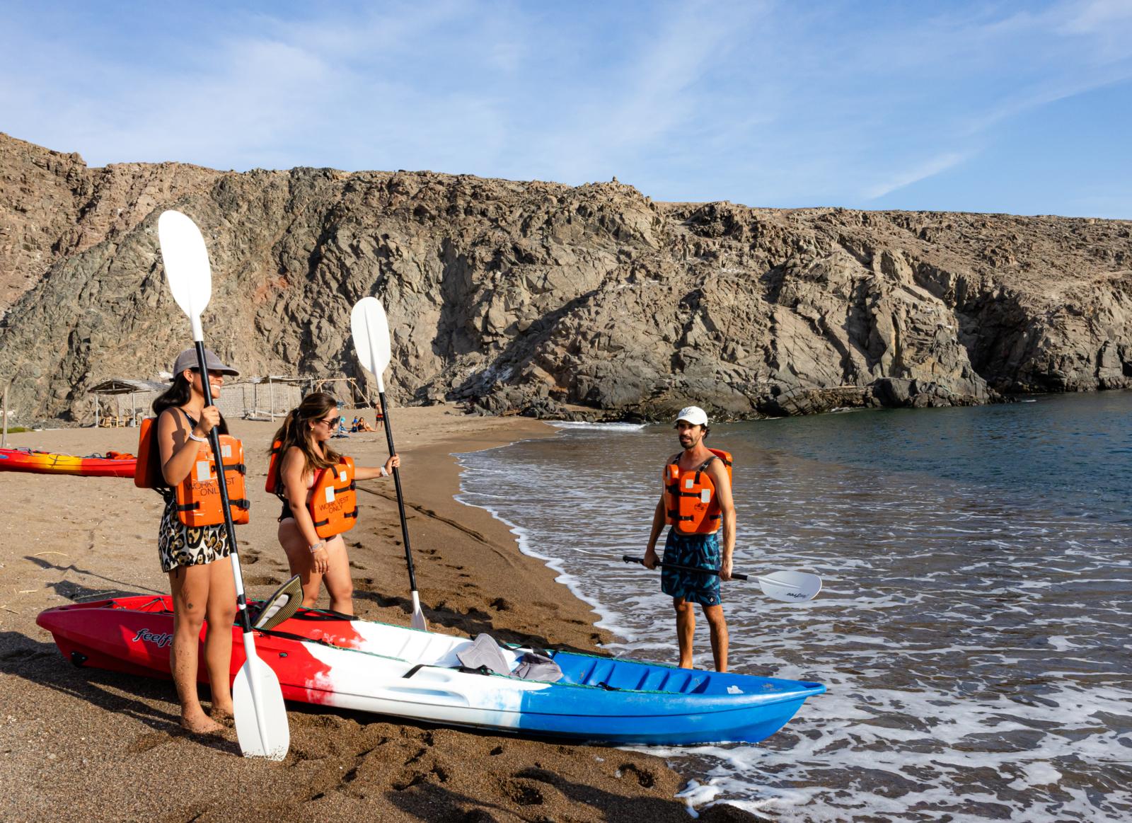 Al terminar, Isaías y su equipo nos invitan a la orilla para practicar paddle, snorkel y pasear en kayak. Poco después, cuando confirman que la marea lo permite, navegamos hacia la isla Hornillos en una embarcación con motor fuera de borda y que no genera ruido alguno. Se trata de una reserva nacional que alberga piqueros, pelícanos, lobos marinos con alborotadas crías y hasta pingüinos de Humboldt.
