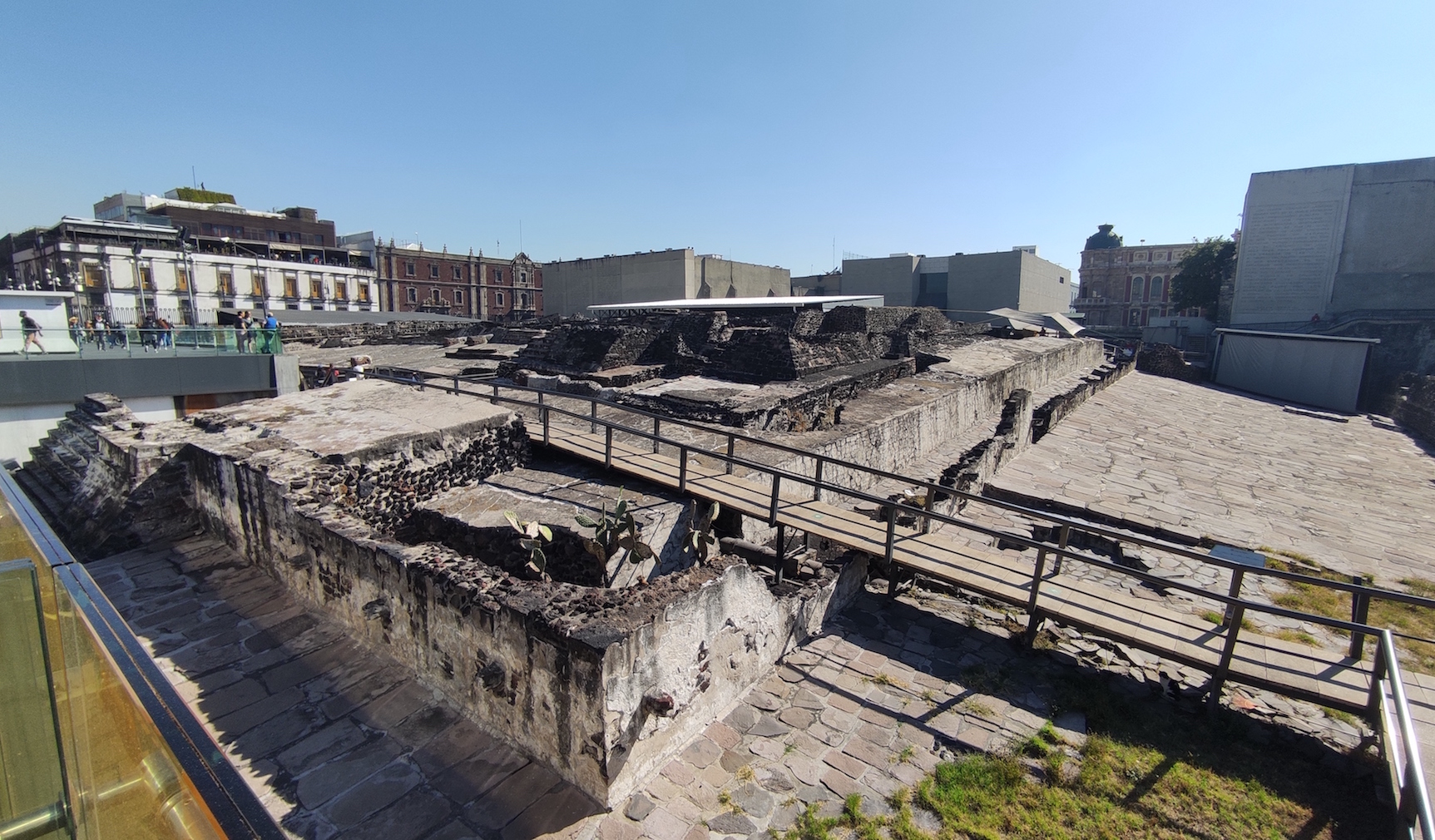 No existe paseo en el Centro de la Ciudad de México que no incluya al Templo Mayor, el principal templo ceremonial de los aztecas, donde se realizaban sacrificios humanos. “Este lugar fue destruido y sobre las ruinas, varios españoles edificaron sus casas. Posteriormente el terreno fue cubierto de sal. Después fue un basurero y tras ello se construyeron varios edificios. Recién en febrero de 1978, unos trabajadores de la compañía de luz descubrieron una piedra de la diosa azteca Coyolxauhqui. Lo que dio inicio a los trabajos de expropiación y demolición de propiedades con los que se descubrió el Templo Mayor”, explica el guía Humberto Villegas.