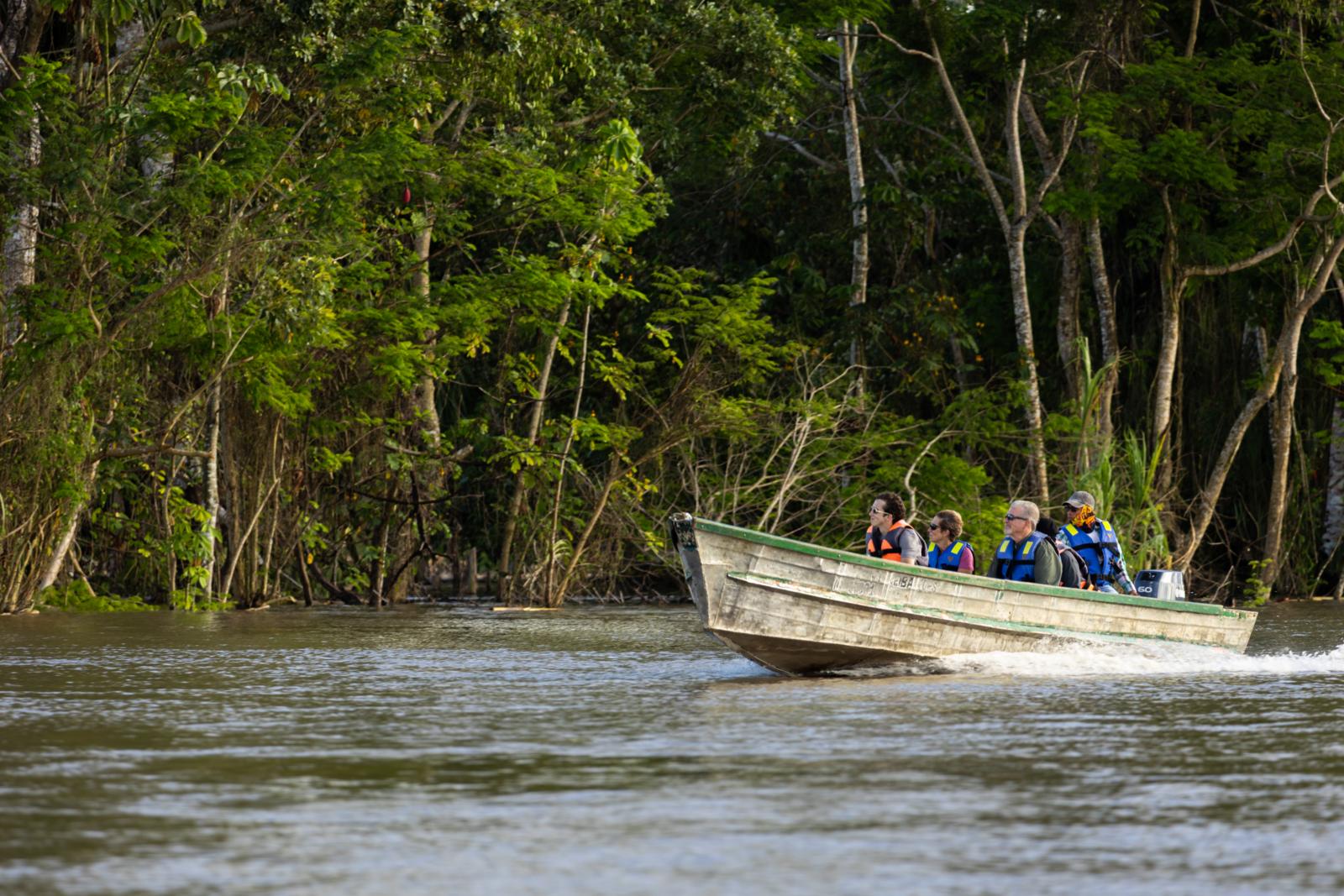 En nuestra estancia realizamos navegaciones en busca de flora y fauna nativa. Pero en la temporada seca puedes caminar por senderos en los bosques primario y secundario de la propiedad. Todo dependerá del tiempo que tengas para quedarte. En sus planes de 2 o 3 días programan visitas a los pueblos Yagua y Maijuna. Lo mejor es que “con las estadías se contribuye con el proyecto Adopta una escuela, por medio del cual se apoya a los niños de varias comunidades cercanas”, asegura Abelardo Flores guía de Ceiba Tops.