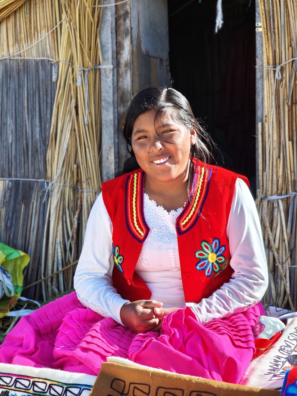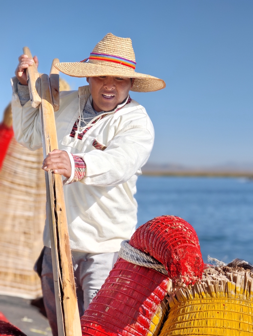 Después de unos 15 minutos de navegación desde la ciudad de Puno, llegamos a las islas de los Uros. El sol cae con fuerza, pero eso no impide que pueda fotografiar a sus pobladores. Solo cinco familias viven en este lugar que cada mes renueva la superficie que habita con totora y que luce casas hechas con la misma fibra natural. Nos enseñan sus tradiciones, cómo cocinan, cómo se trasladan en una balsa muy llamativa y con qué habilidad tejen sus artesanías para la venta. Mientras conversamos, aprovecho para sacar fotos que destacan por los colores intensos, el nivel de detalle y la mayor profundidad de campo. Cero fotos quemadas. Pese a las condiciones de luz, logro excelentes recuerdos viajeros.