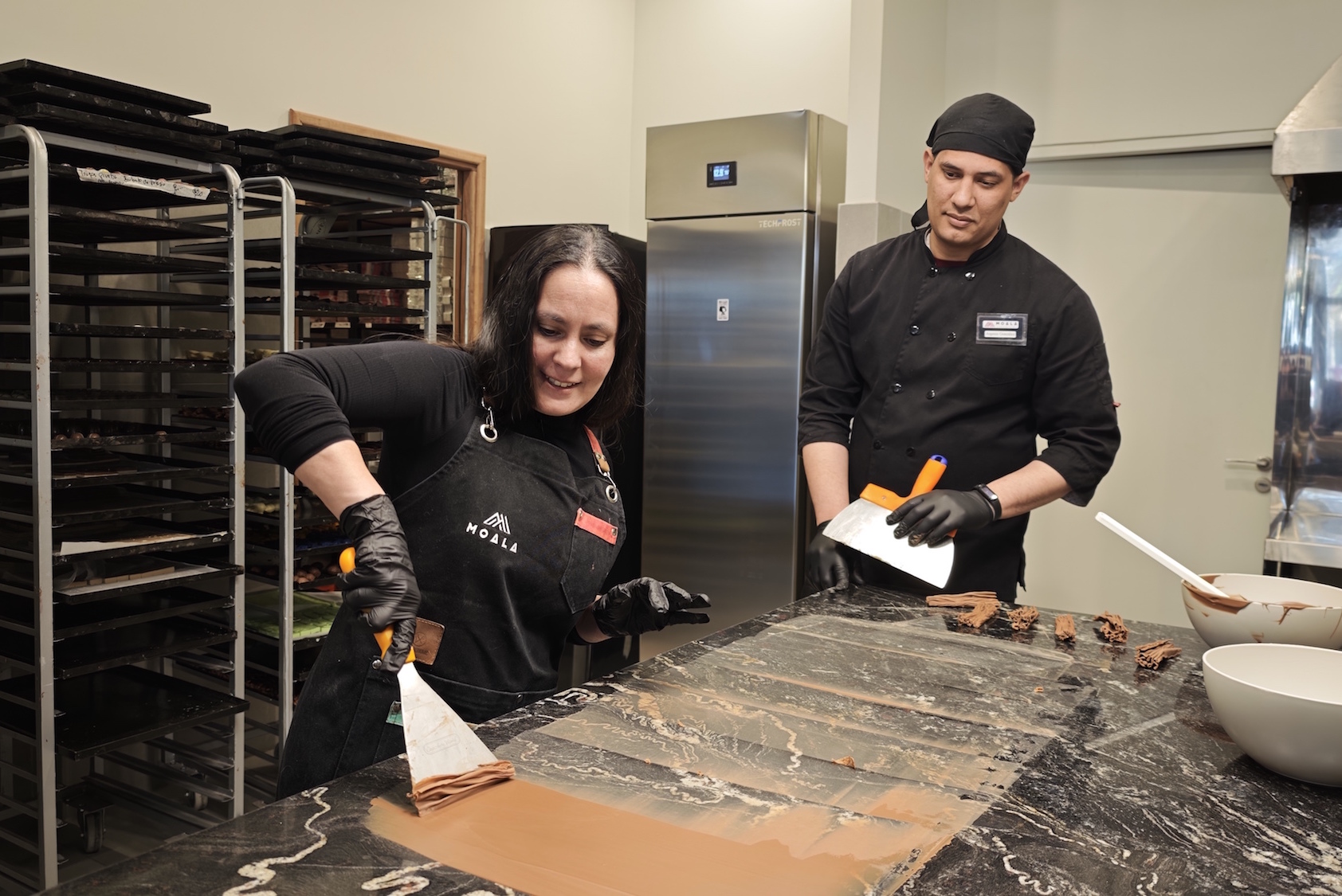 La caminata por el centro es obligada y muy segura. Además de las tiendas de ropa, encuentras restaurantes donde sirven el típico cordero patagónico y chocolaterías como Moala, un paraíso para todo chocolatero en el que puedes conseguir desde pequeñas ovejas, símbolo de El Calafate, chocolate en rama, que es la estrella de la Patagonia Argentina, y hasta tabletas del célebre Dubái. Todos elaborados de forma artesanal y presentados con mucho estilo. Este negocio nació en Ushuaia durante la pandemia y desde hace un año opera con mucho éxito en este destino.
