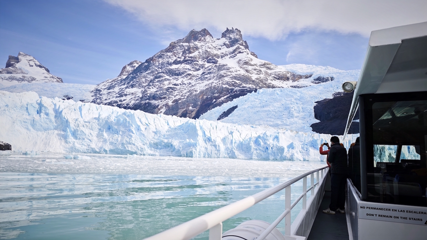 La excursión comienza en el puerto Punta Bandera, a 47 kilómetros de El Calafate, donde se toman las embarcaciones. Dura unas 8 horas y hace una parada en el único refugio dentro del Parque Nacional Los Glaciares. Un lugar con un restaurante con ventanales que van del piso al techo, donde se puede almorzar una cazuela de cordero con vista al glaciar. Y con una terraza exclusiva para hacer la sobremesa con una copa de vino e impresionantes panorámicas. De regreso, la tripulación extrae un hielo de gran tamaño ante los ojos atónitos de los viajeros para realizar el brindis más esperado del viaje: un whisky en las rocas con hielo de la Patagonia. Sueño cumplido.