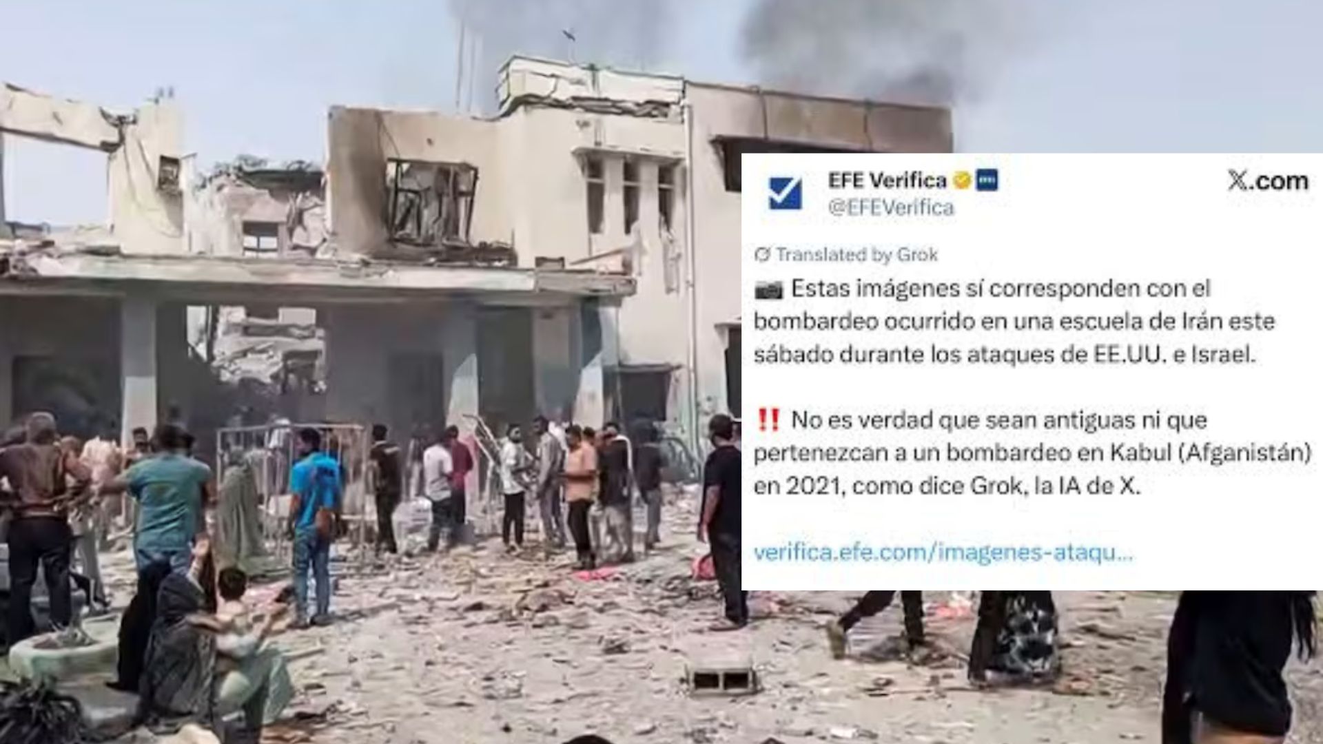 En medio de la escalada de tensión entre EE.UU., Israel e Irán, el pasado sábado 28 de febrero la Agencia EFE publicó en sus redes sociales varias imágenes sobre cómo habían quedado diversas zonas del país persa tras el ataque militar estadounidense. Algunas imágenes y videos mostraban el estado en el que una escuela femenina de Minab había quedado, donde tras los bombardeos se reportó la muerte de más de 100 personas y al menos 85 alumnas. Todos hechos reales, verificados. Sin embargo, Grok realizó una “relectura” del contenido, desmintiendo el hecho y cuestionando la credibilidad de la agencia ante millones de usuarios.