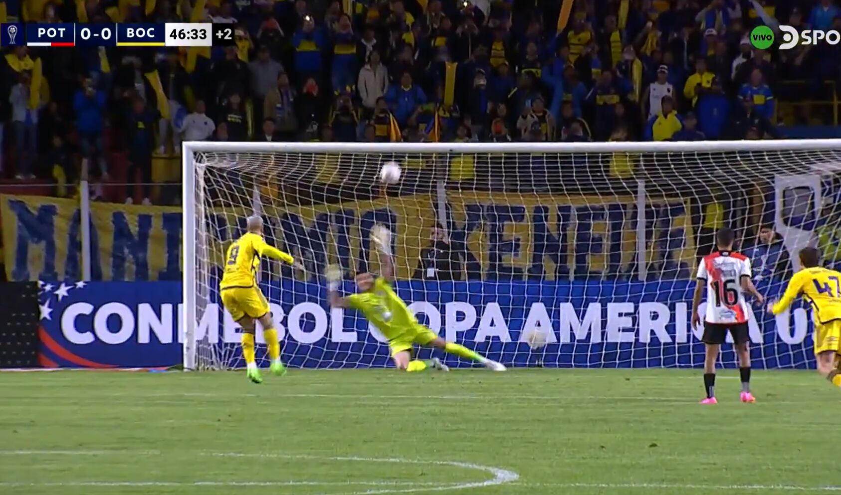 Boca Juniors visita a Nacional Potosí por la fecha 1 del Grupo D de la Copa Sudamericana, este miércoles 03 de abril del 2024. Pocos segundos antes de culminar el primer tiempo, Darío Bendetto tuvo en sus botines el primero de los ‘Xeneizes’ desde los doce pasos. Sin embargo, el delantero argentino estrelló su disparo en el travesaño.