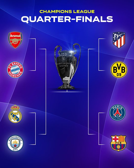 Arsenal y Bayern de Múnich protagonizarán el otro duelo de unos cuartos que se disputarán los días 9 y 10 (ida), y 16 y 17 de abril (vuelta).