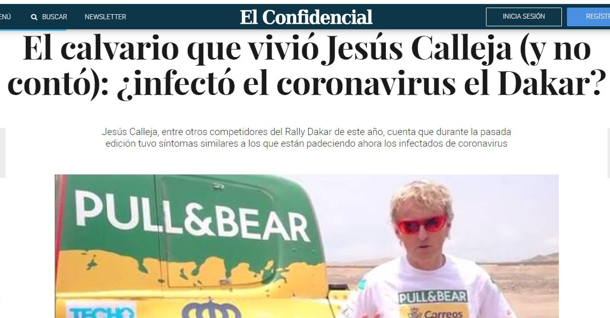 El piloto español Jesús Calleja fue quien puso el tema sobre el tapete. El también presentador de televisión, aseguró en una entrevista a “El Confidencial” de su país que pudo haber tenido coronavirus. “Cuando empecé a sentirme mal, un médico me dijo que parecían los síntomas de los gripe A. Más de la mitad del campamento pillamos la misma m...”, contó el piloto. Y asegura que el día de descanso se sintió tan mal que su hijo tuvo que ayudarlo a vestirse y bajar de su habitación. “En Overdrive, todos con la misma tos y fiebre, escalofríos... Aquello era chungo de cojones. Duró diez u once días”, aseguró.