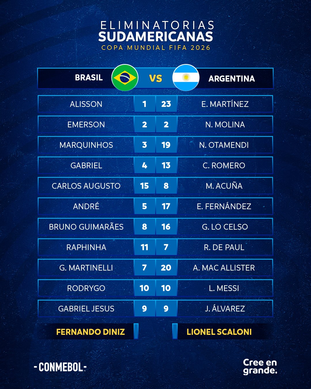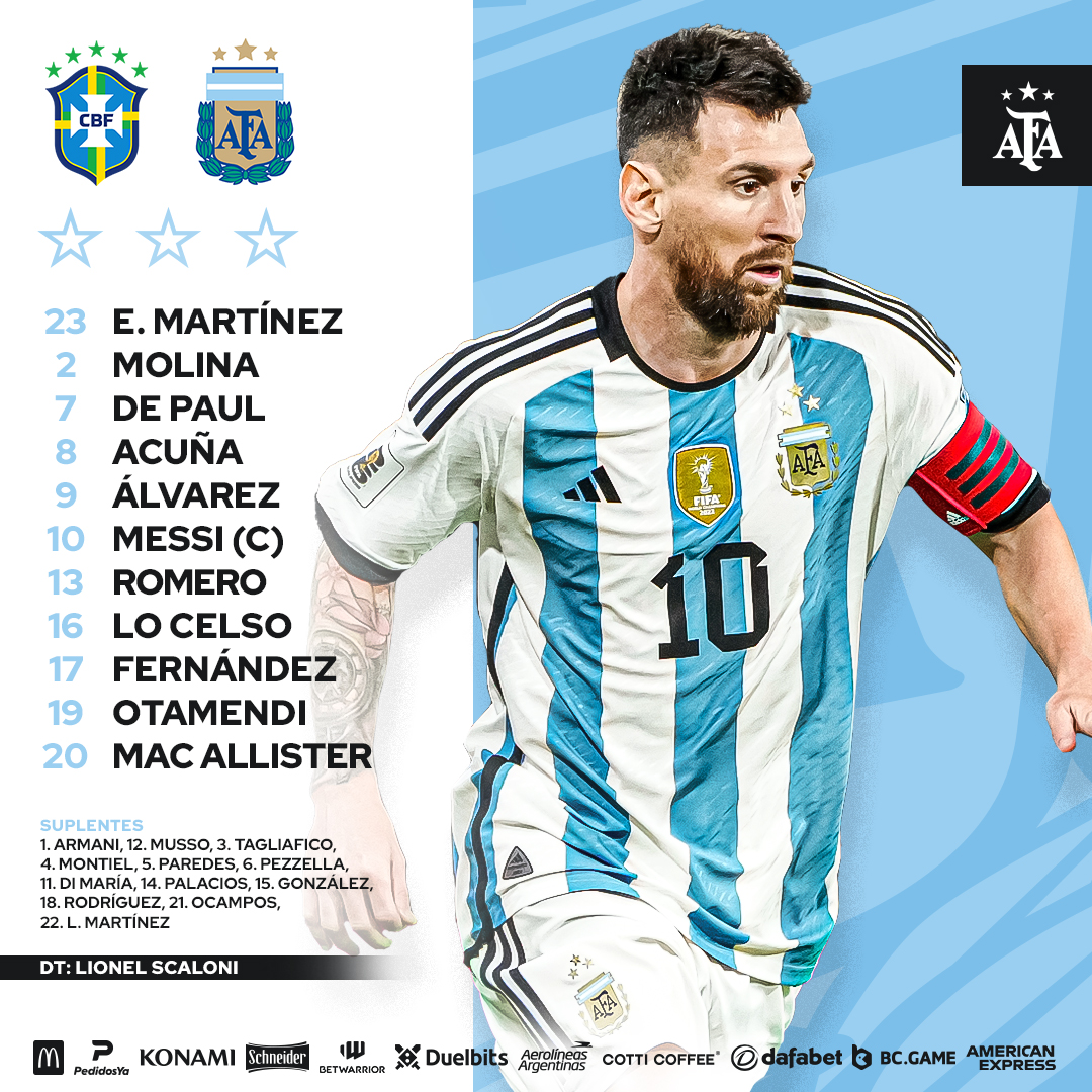 Debido a las bajas de Brasil, el técnico de la selección argentina, Lionel Scaloni indicó: “Todos los jugadores son de primer nivel. Más allá de las bajas que pueda sufrir, tiene reemplazos que estarán a la altura”.