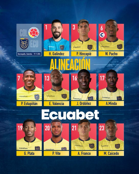 Ecuador derrotó por la mínima diferencia a Colombia en el Estadio Metropolitano Roberto Meléndez por la fecha 11 de las Eliminatorias sudamericanas 2026 el martes 19 de noviembre de 2024. La ‘Tri’ se adelantó rápidamente en el marcador gracias al gol de Enner Valencia a los 7 minutos.