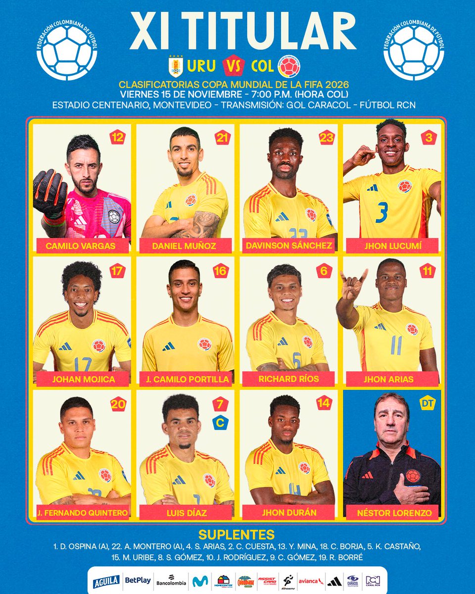 Aquí inicia la cobertura del partido de Colombia vs. Uruguay por la jornada 11 de las Eliminatorias 2026, desde el Estadio Centenario de Montevideo.