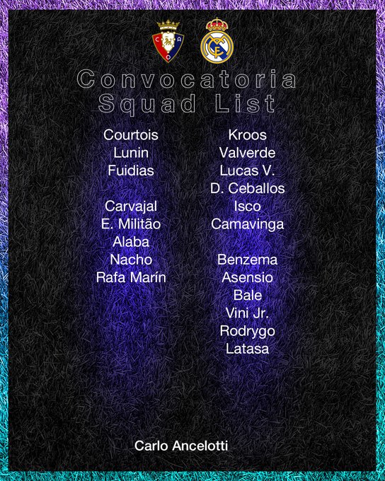 ALINEACIN#OsasunaRealMadrid pic.twitter.com/IqvBo6ki7T