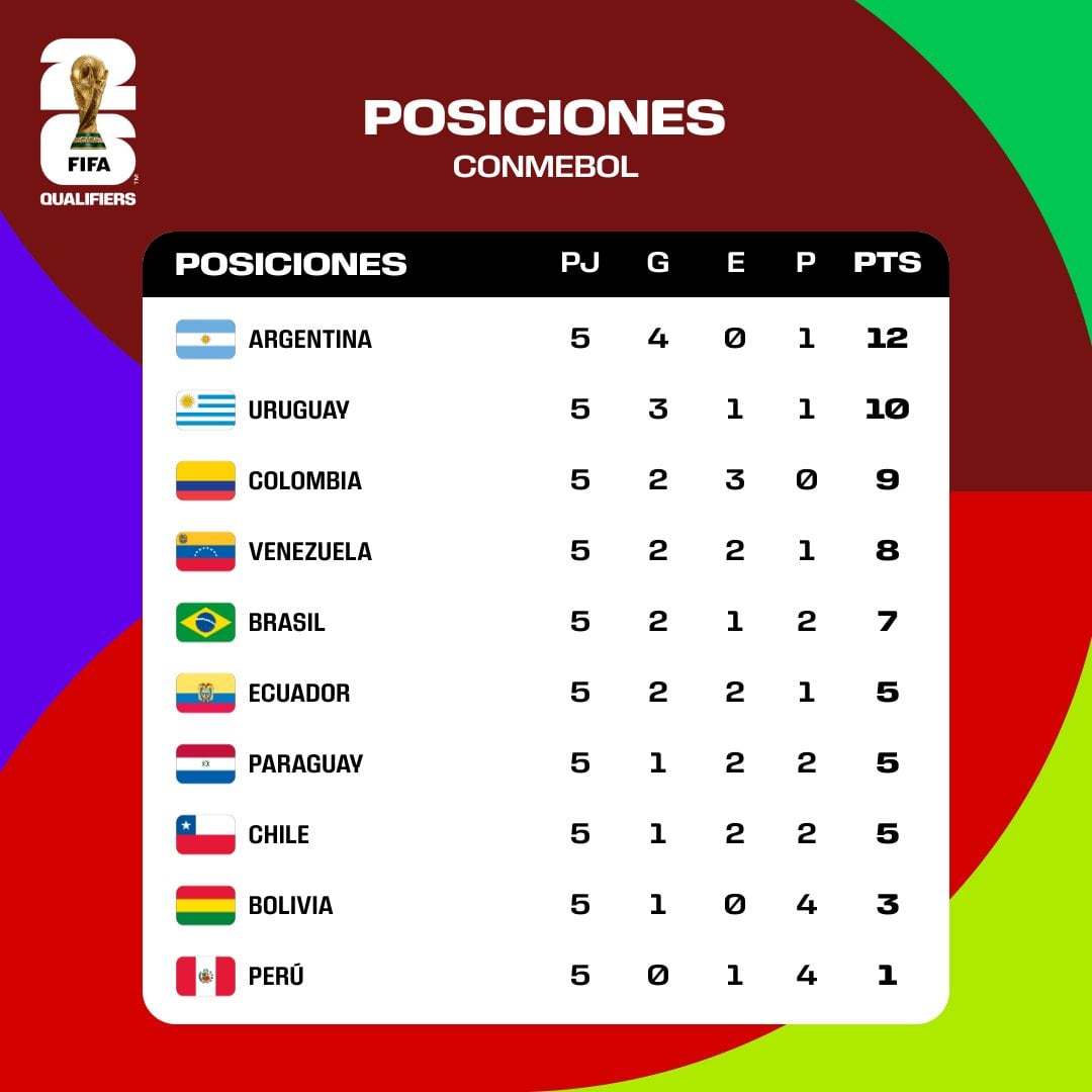 Tabla de posiciones de clasificación de Eliminatorias CONMEBOL 2026