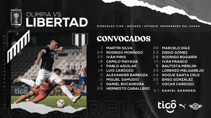 Los convocados de #Libertad para el juego ante Olimpia!#CopaParaguay2022#VamosGUMA#LibertadEsFamilia pic.twitter.com/U3aeiKkCX1