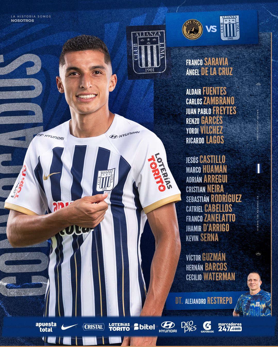 - Franco Saravia, Carlos Zambrano, Juan Pablo Freytes, Renzo Garcés, Jhamir D’Arrigo, Marco Huamán, Sebastián Rodríguez, Catriel Cabellos, Adrián Arregui, Hernán Barcos y Kevin Serna.