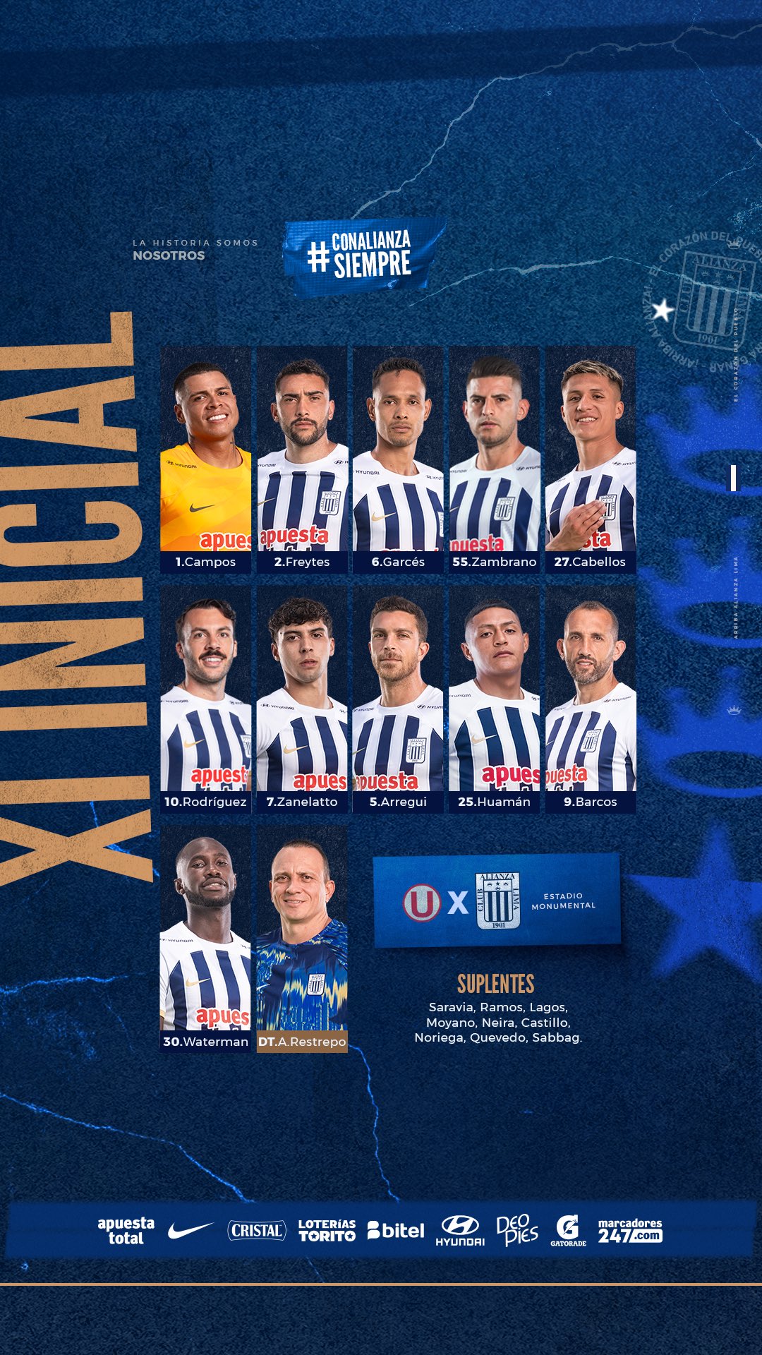 Posibles alineaciones, Universitario vs. Alianza Lima