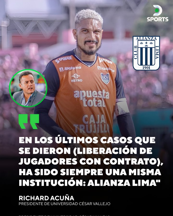El presidente de César Vallejo consideró que la liberación de Paolo Guerrero podría marcar un mal precedente en el fútbol peruano y acusó a Alianza Lima de contratar a jugadores en situaciones similares.
