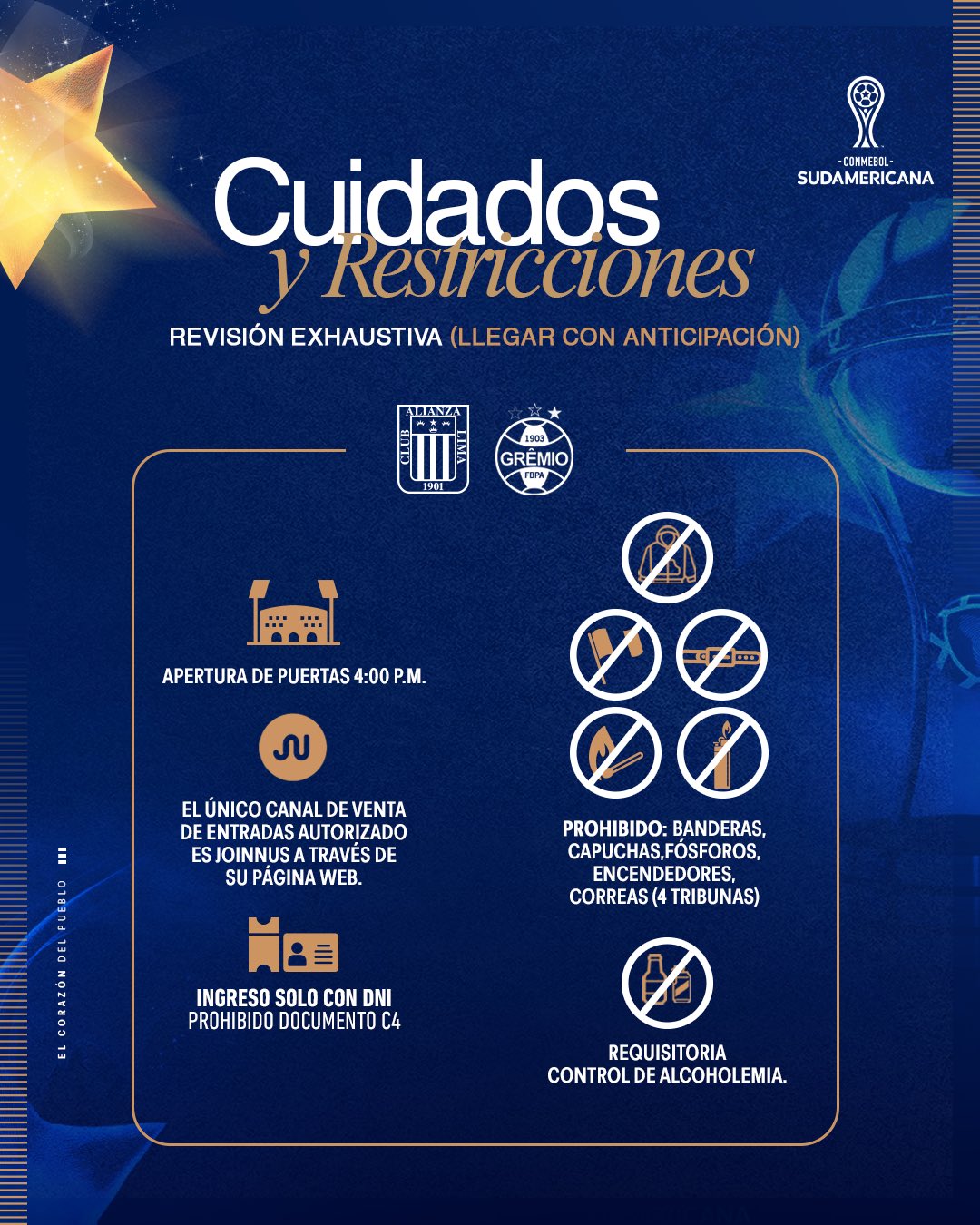 Alianza Lima vs. Gremio juagarà este miércoles 16 de julio y el partido podrá ser visto en DSports y vía streaming en DGO en Perú, Argentina, Colombia, Chile, Ecuador, Uruguay y Venezuela.