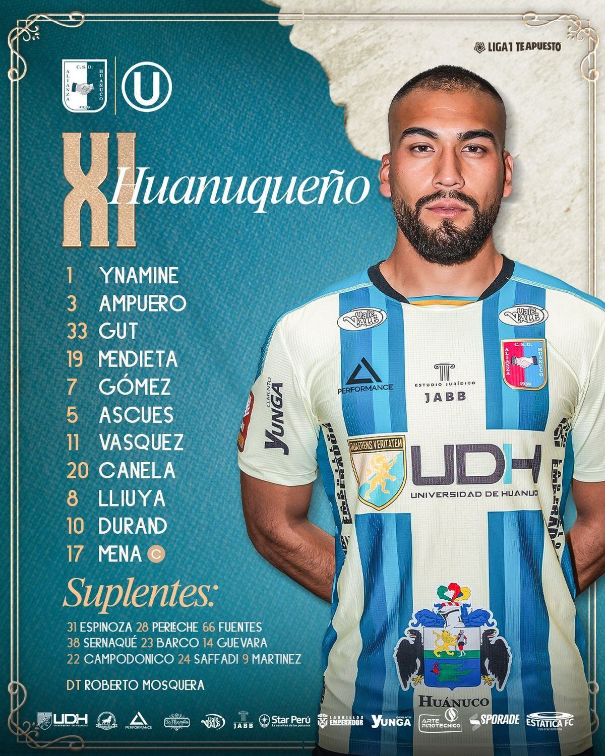 - Alianza UDH: Ynamine, Ampuero, Gut, Mendieta, Gómez, Ascues, Vasquez, Canela, Lliuya, Durand, Mena.