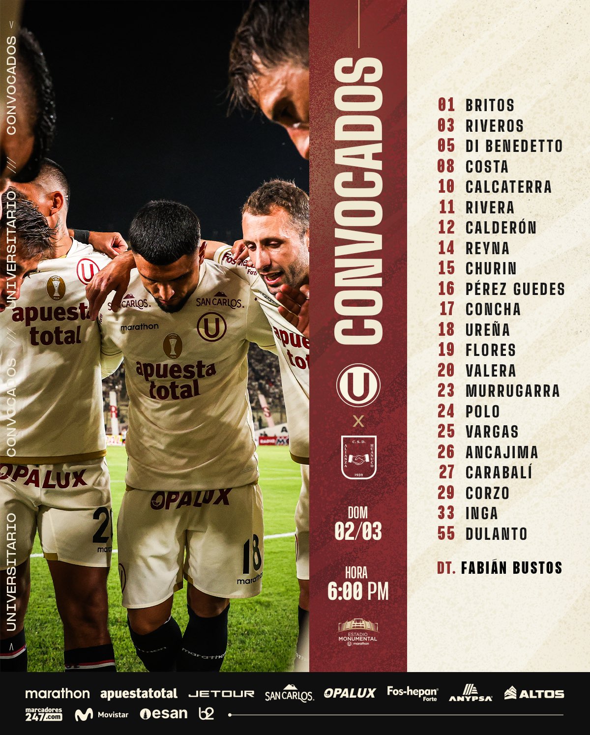 Cambios en Universitario: Ingresan Rivera y Concha, se retiran Valera y Calcaterra.