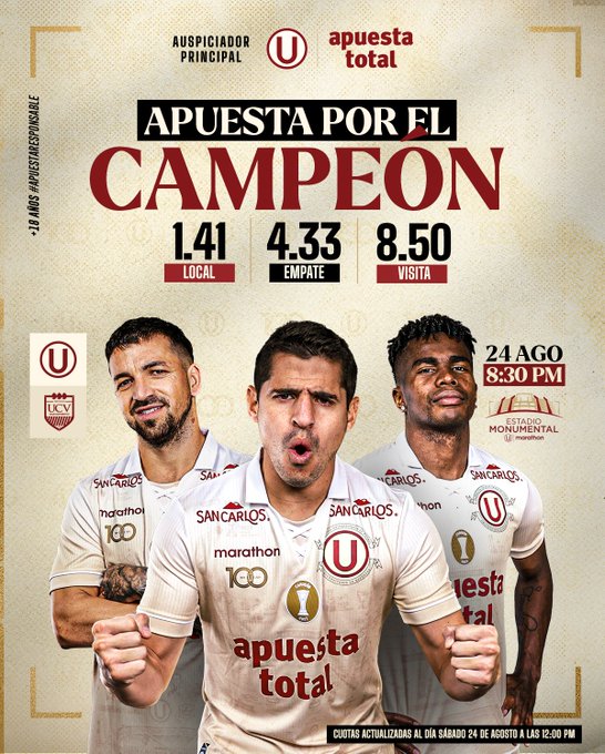 El partido de Universitario vs César Vallejo se juega hoy sábado 24 de agosto de 2024.