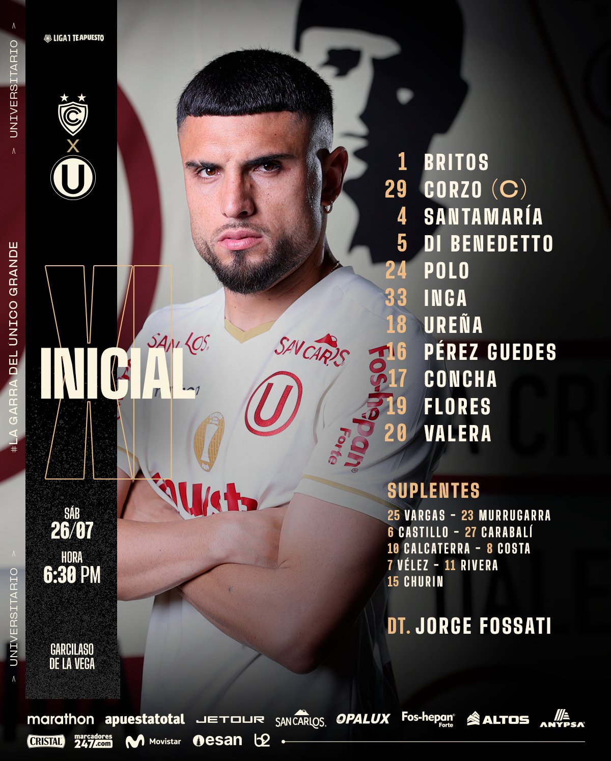Universitario de Deportes empató 1-1 con Cienciano en el Estadio Inca Garcilaso de la Vega por la fecha 2 del Torneo Clausura de la Liga 1 2025, este sábado 26 de julio de 2025. Álex Valera y Alejandro Hohberg marcaron para sus respectivos clubes.