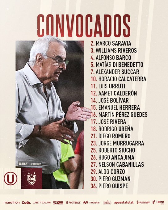 Estos son nuestros convocados para enfrentar a @Club_Cienciano por la #Liga1Betsson Apertura.#ConLaUHastaElFinal pic.twitter.com/a8DbehAXUO