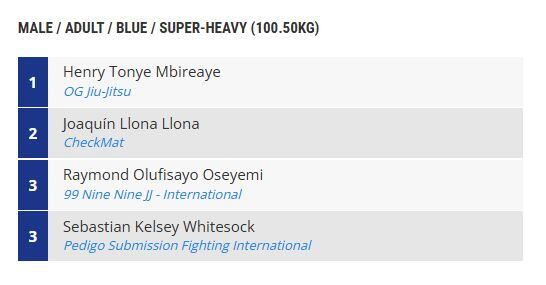 Joaquín Llona logró el segundo lugar en el Dublin International Open IBJJF Jiu-Jitsu Championship, en la categoría varones adultos cinturón azul, en los super pesados (100.50kg) de la modalidad GI.