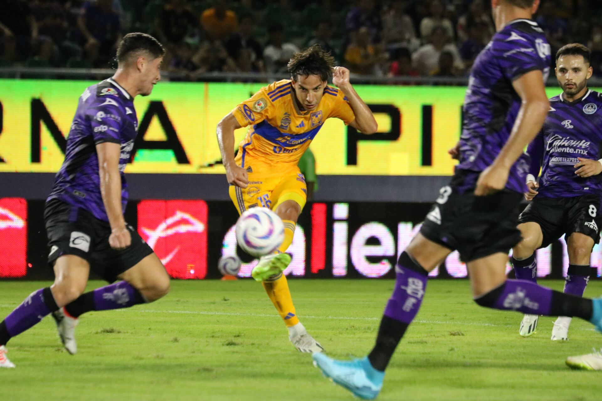 Antes del descanso, al 43, Diego Lainez condujo un ataque desde el último tercio del campo, entró al área del Mazatlán y definió el 1-1 para los felinos. El argentino Nicolás Ibáñez consiguió el 2-1 para los Tigres con un remate de cabeza, al 55.