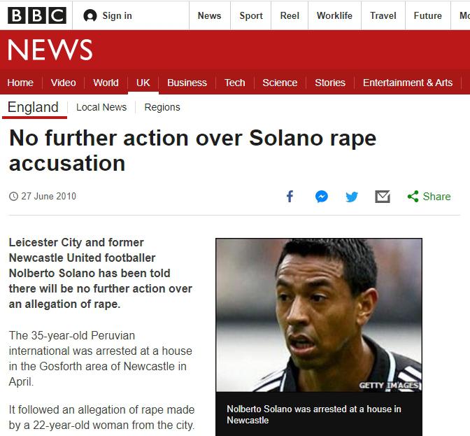 “Solano ha cooperado plenamente con la investigación y ha dado una explicación detallada de su posesión del pasaporte. Solano confía en que su explicación sea aceptada y que en definitiva se determine que no ha hecho nada impropio”, comunicó el club Newcastle en su momento.