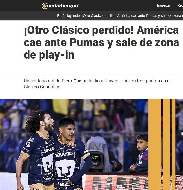 Piero Quispe fue la gran figura de los Pumas UNAM en la victoria de 1-0 sobre América, por la décima jornada del Torneo Apertura de la Liga MX.
