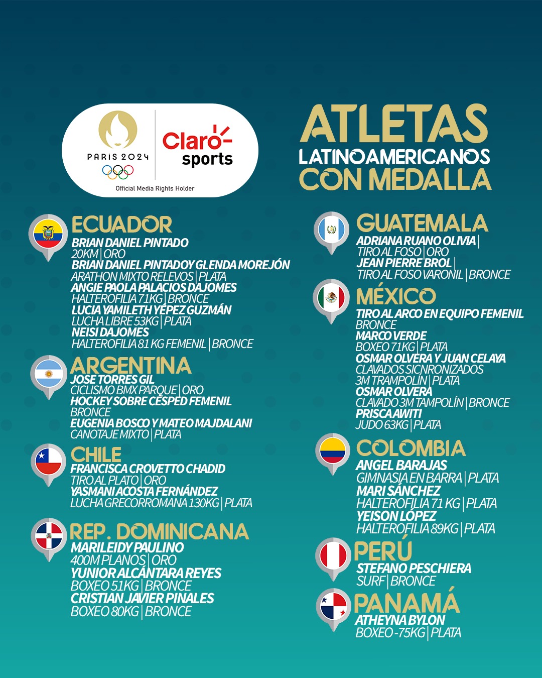 Así quedó el medallero para Latinoamérica por país en París 2024: