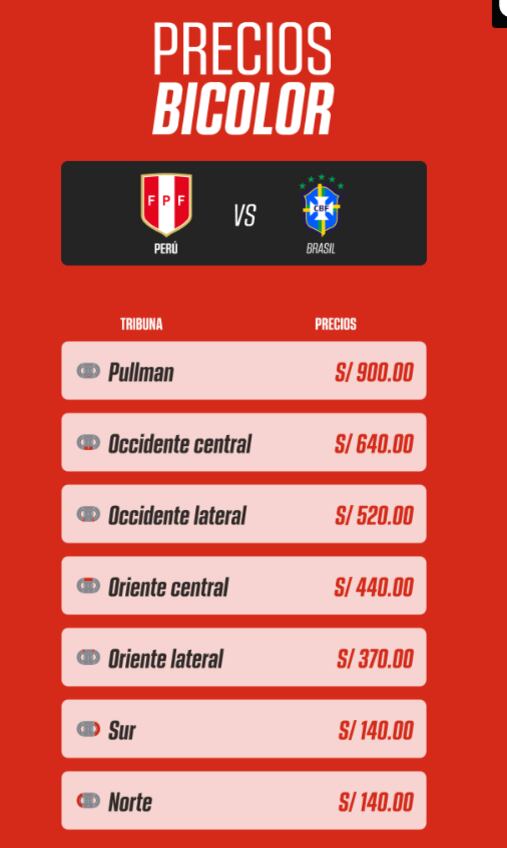 Según informó Joinnus, la venta de boletos para el partido Perú vs Brasil inició este martes 5 de setiembre a partir de las 10:00 a.m. a través del siguiente link: labicolor.joinnus.com.