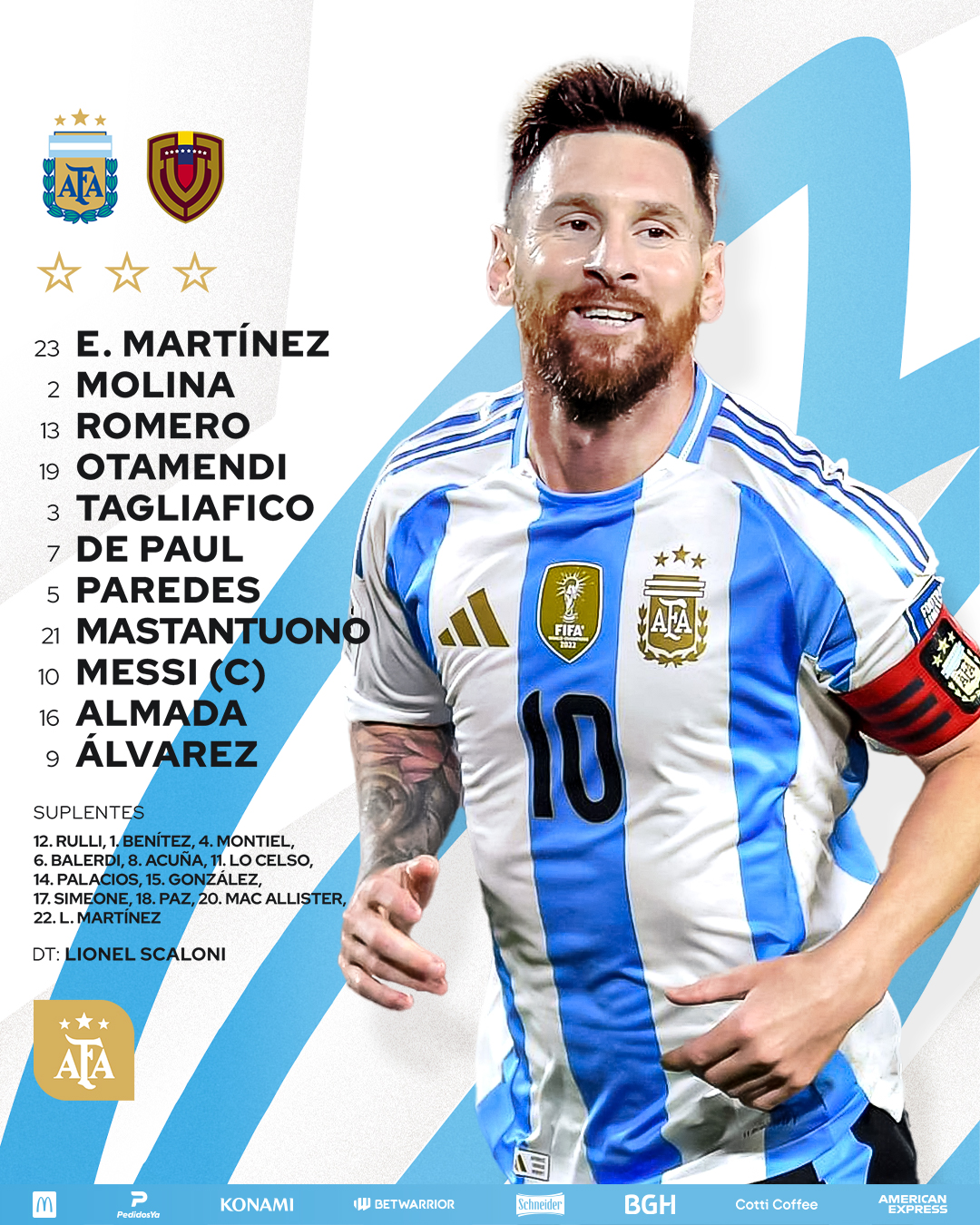 Bienevenidos a la cobertura en vivo del partido entre Argentina y Venezuela por la penúltima jornada de las Eliminatorias al Mundial 2026.