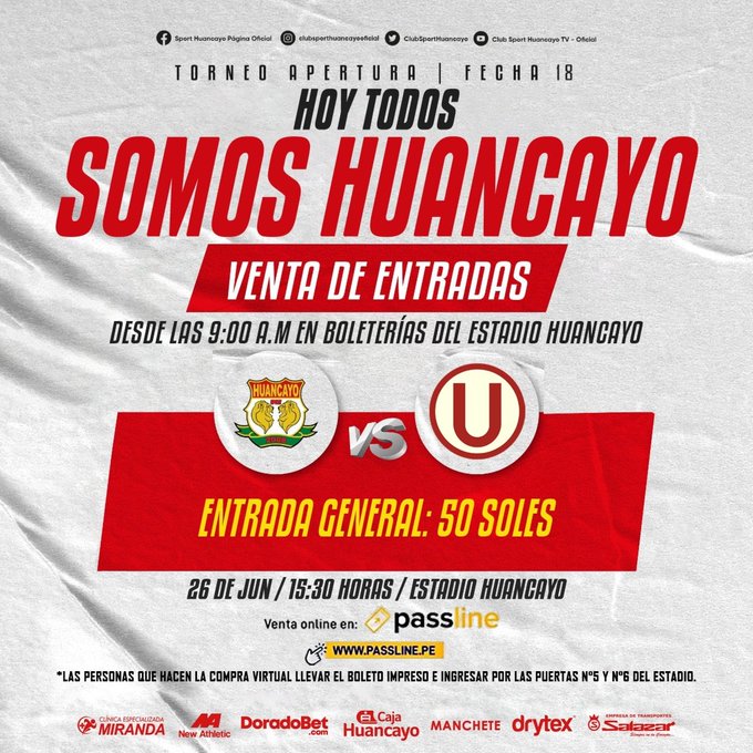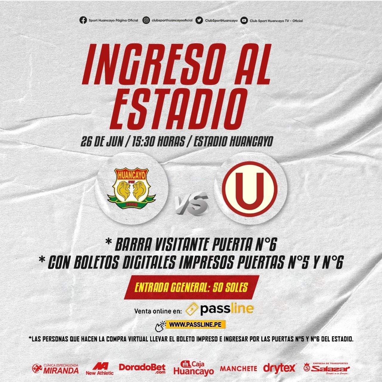 HORARIO UNIVERSITARIO VS SPORT HUANCAYO