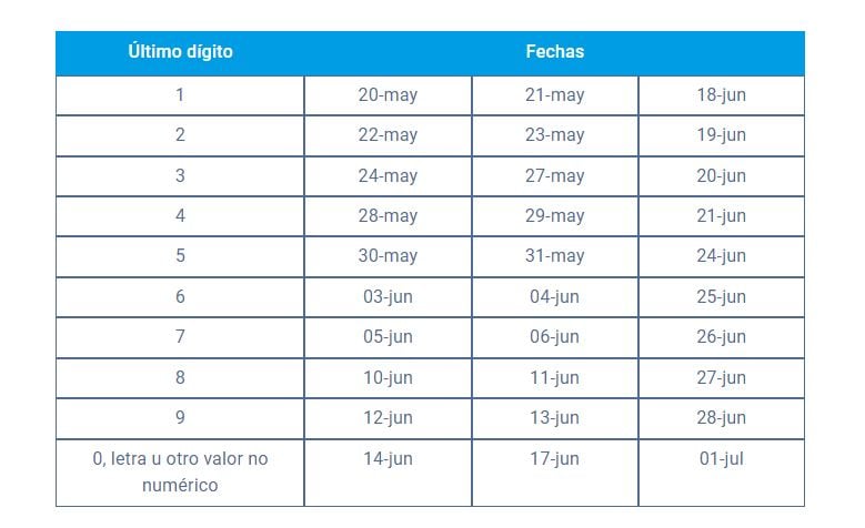 - Si tu DNI termina en 2, podrás solicitar el retiro en las fechas: 22 de mayo, 23 de mayo y 19 de junio