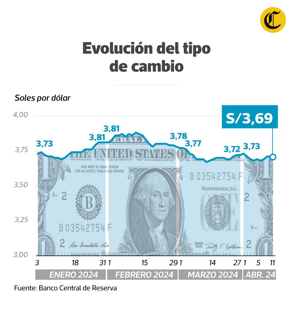 El dato de inflación en marzo de Estados Unidos publicado este último miércoles ascendió a 3,5%, más de lo esperado por el mercado, lo que retrasaría el recorte de tasas de la Reserva Federal (FED) de junio a setiembre. Ante este resultado, el tipo de cambió abrió al alza este jueves; sin embargo, al cierre del día, la cotización se estabilizó y fue de S/ 3,69, similar a la del martes.