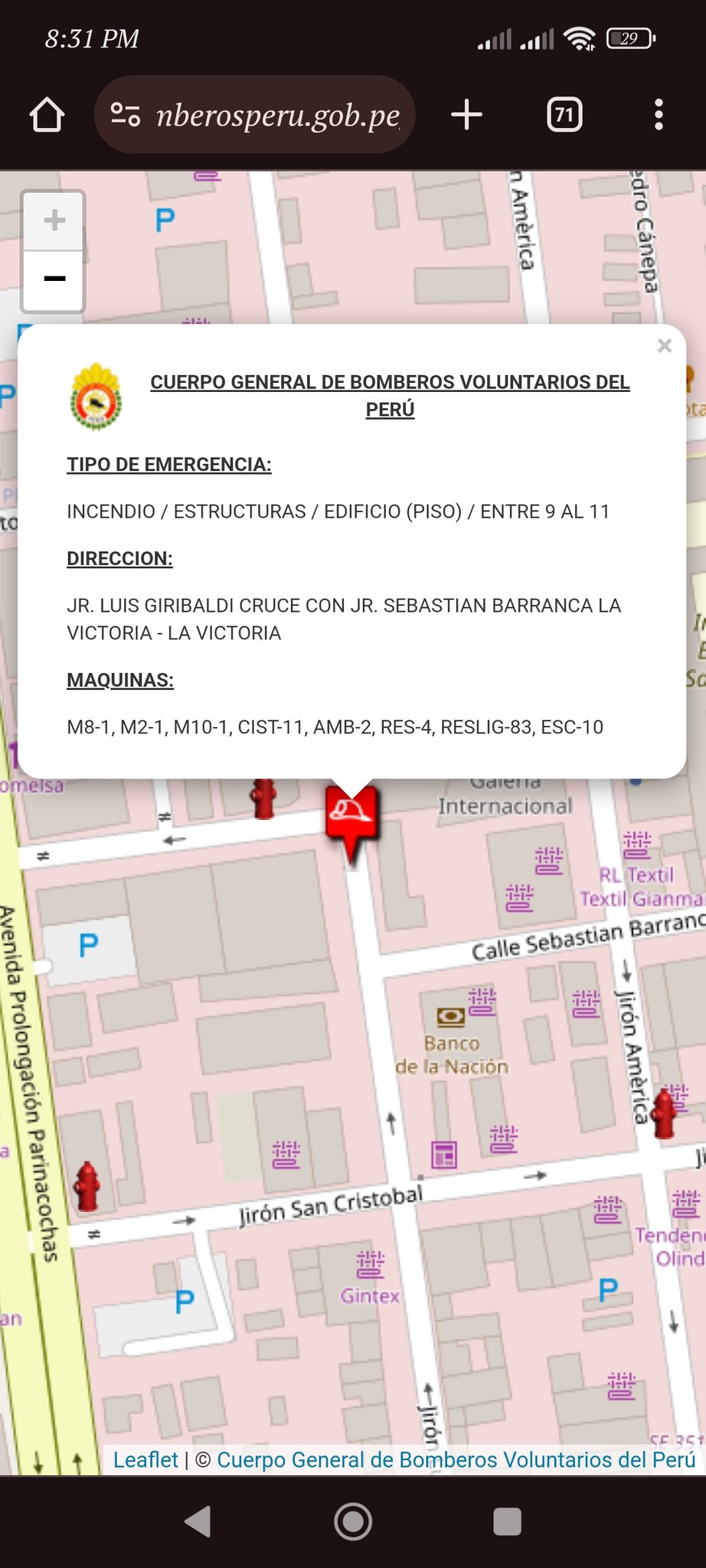 Se reporta que el Cuerpo de Bomberos ha cerrado todos los accesos al Jirón Giribaldi para controlar el siniestro.
