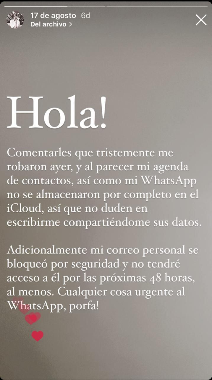 Patuska sostuvo que no pudo poner una denuncia policial inmediatamente porque le dio prioridad a bloquear sus cuentas con la finalidad de no sufrir ningún robo cibernético. Para advertir a sus conocidos de que ya no contaba con su equipo, en caso de recibir algún mensaje suyo, publicó una denuncia en su cuenta de Instagram. “Luego de mi publicación, vi que algunas personas habían pasado por algo similar en esa zona o puntos aledaños. La mayoría estaba esperando un taxi y apareció el ladrón”, contó.