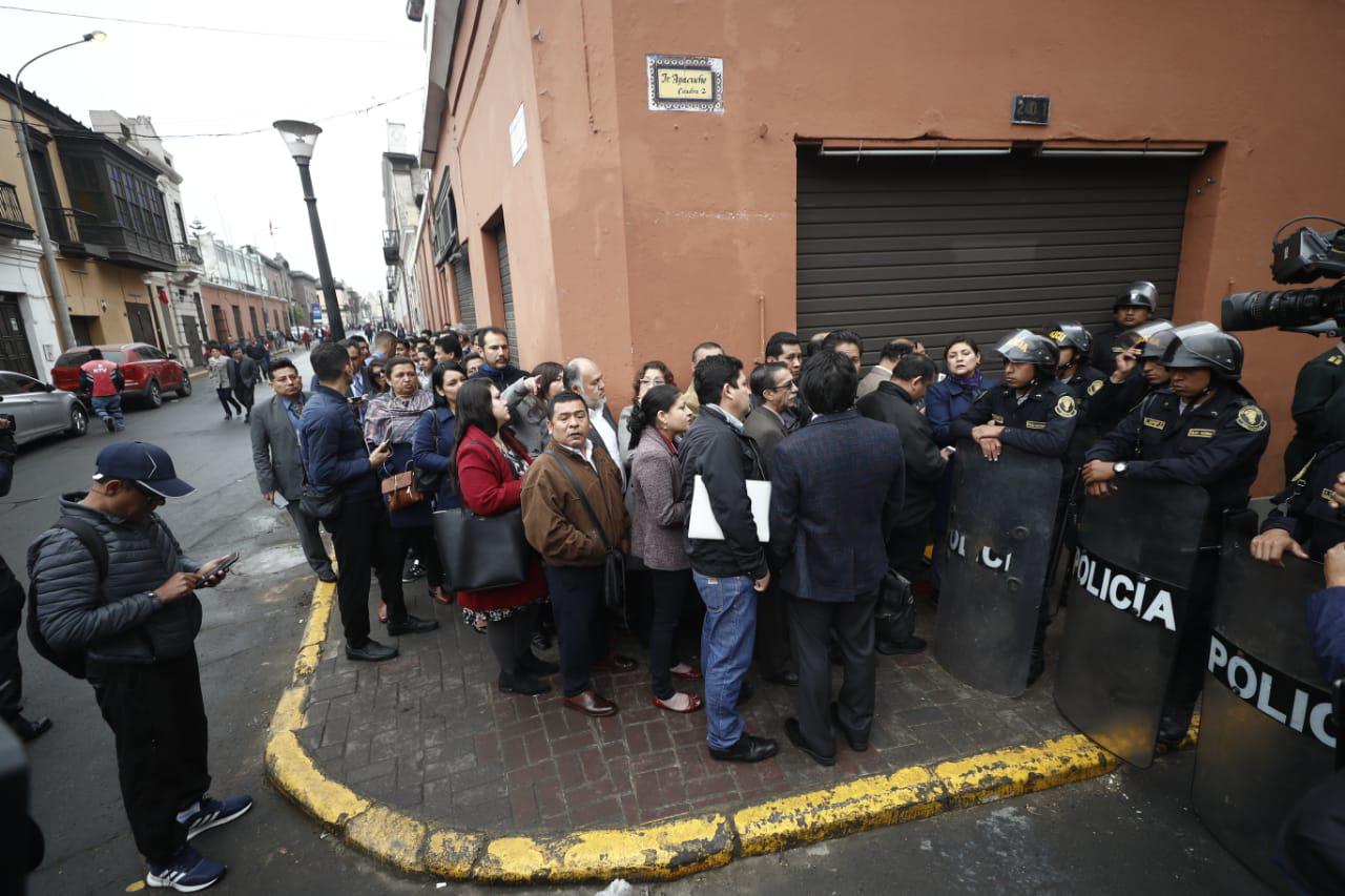 Esta mañana, el Centro Histórico de Lima luce con las calles cerradas y un gran contingente de la Policía Nacional del Perú (PNP) desplegado en diferentes zonas debido que desde el lunes fue escenario de manifestaciones ciudadanas en respaldo a la decisión del presidente de la República, Martín Vizcarra, de disolver el Congreso de la República.
