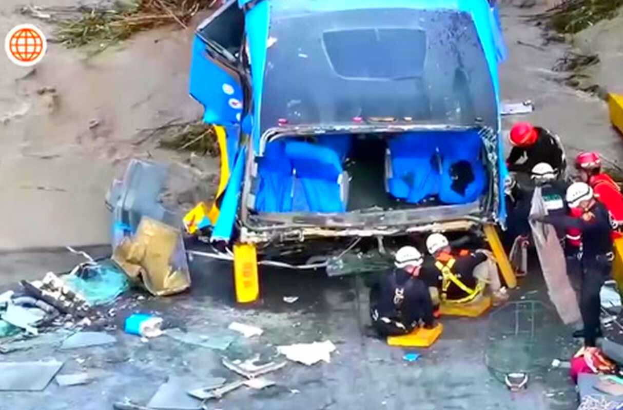 Bomberos, agentes de la Policía Nacional y personal de serenazgo vienen trabajando en las labores de rescate. Se informó que algunas personas quedaron atrapadas dentro del vehículo y luchaban por sobrevivir.