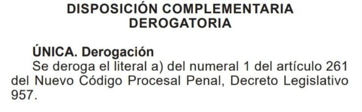 El Gobierno promulgó este miércoles la Ley 32181, que deroga la posibilidad de aplicar detención preliminar en casos de no flagrancia.