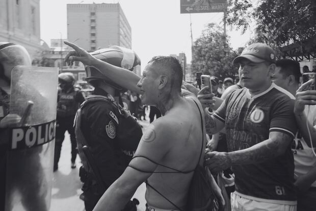 Los aficionados, quienes partieron desde el estadio ‘Lolo’ Fernández, marcharon pacíficamente; sin embargo, un grupo no pudo llegar a la sede del Cercado de Lima debido a que la Policía Nacional del Perú (PNP) les impidió el pase, según denuncian, de manera violenta.