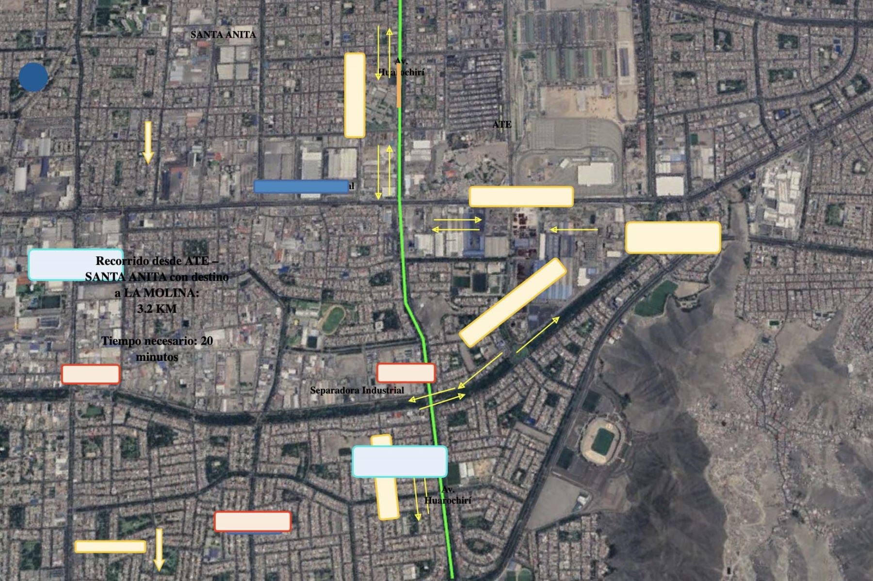 En el área de intervención funcionan dos empresas privadas: Transportes 77 S.A., vinculada a Backus, y Tejidos San Jacinto S.A. Ambas cuentan con resoluciones de habilitación urbana otorgadas por la Municipalidad de Ate. Estas resoluciones establecen la obligación de aportar áreas para proyectos provinciales.