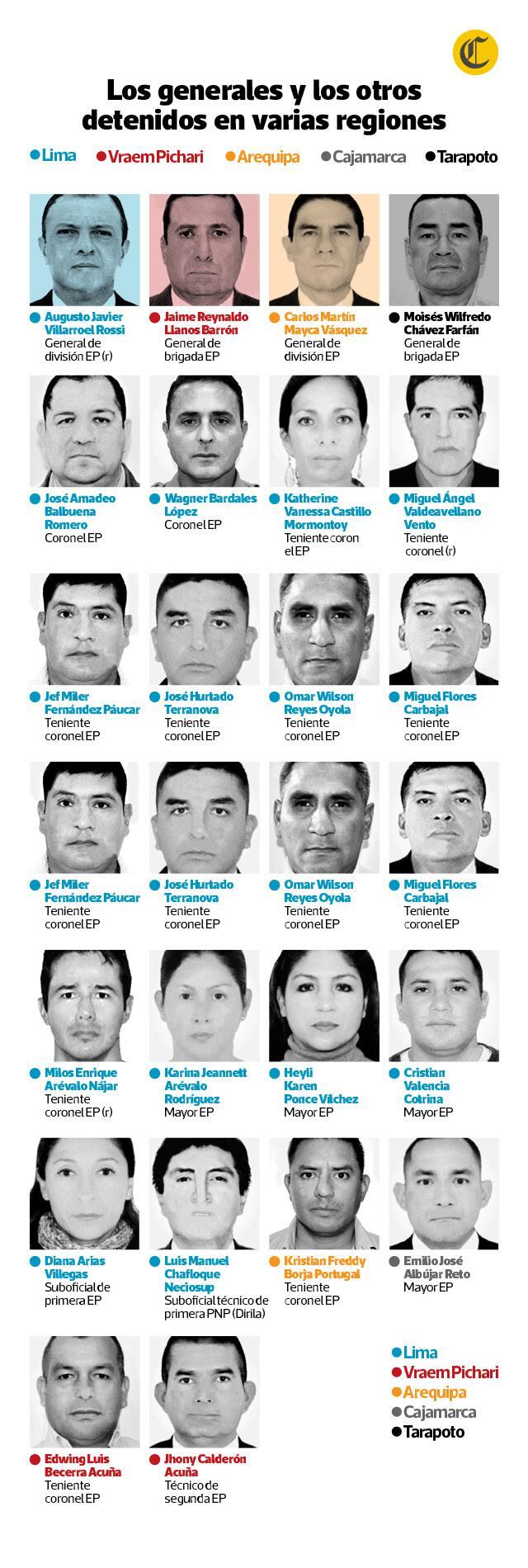 Esta es la lista de oficiales del Ejército del Perú y de la Policía Nacional detenidos:
