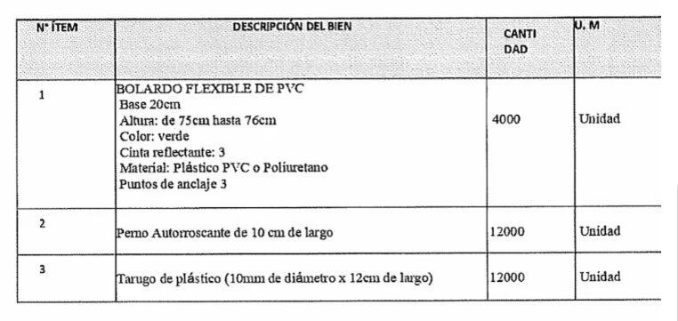 De acuerdo con el expediente del Sistema Electrónico de Contrataciones del Estado (Seace), la comuna de Miraflores requirió 4 mil conos de color verde a fin de que estos sean instalados en las pistas del distrito. Así lo muestran las bases de la adjudicación.