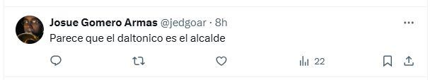 “Tras la técnica explicación de Carlos Canales, me pregunto, ¿seré daltónico? ¿Acaso el puente también es verde?“, dijo sarcásticamente un usuario. Asimismo, otro manifestó lo siguiente: ”Parece que el daltónico es el alcalde".
