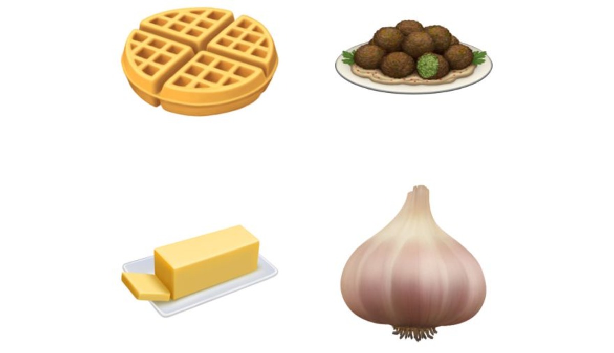 Entre los alimentos, uno de los grupos más usados en el mundo, incluso para usos más allá del culinario, habrá representaciones del ajo, la cebolla, los wafles, la mantequilla, los falafel, la ostra, la caja de jugo, el cubo de hielo y la famosa hierba mate argentina.