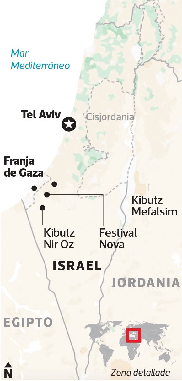 “Esto fue peor que el 11-S. Los estadounidenses sufrieron unos atentados terribles, con aviones estrellándose contra las Torres Gemelas, pero el grado de crueldad que vimos aquí no tiene comparación. Hubo mujeres mutiladas, sus cuerpos fueron abusados, metieron a bebes a hornos y los encendieron. Fue terrible, eso no es humano”, dice un conductor israelí de ascendencia iraquí mientras su mirada se pierde entre las fotos de las víctimas instaladas en el memorial de Nova.