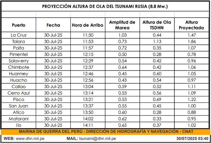 - Emiten alerta de tsunami en la costa peruana tras terremoto de magnitud 8.8 en Rusia