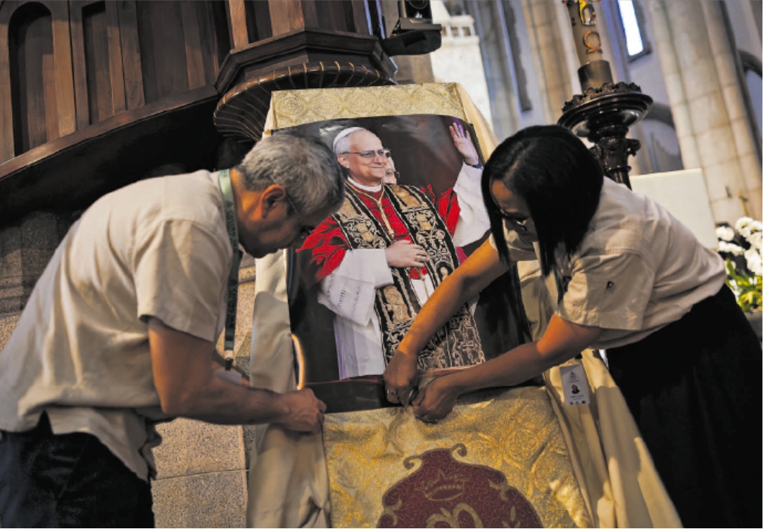 Colocaron una imagen del nuevo papa para que los fieles lo puedan apreciar.