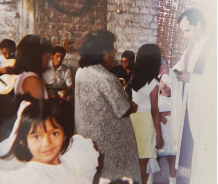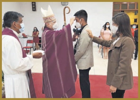 “Foto de mi confirmación durante la pandemia del COVID-19. Monseñor luce con un protector facial. Era obispo de Chiclayo y administrador apostólico del Callao”.